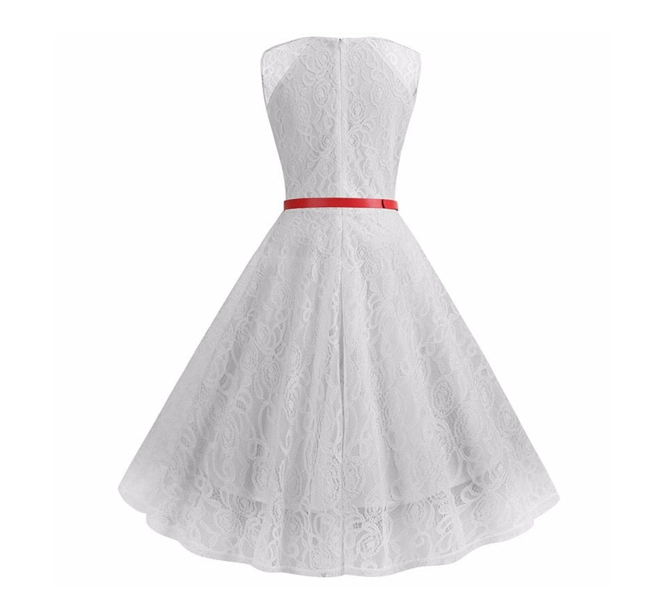 Descubre este magnífico Vestido Pin Up Blanco para añadir elegancia a tu look vintage con facilidad. Te encantará el aire chic y minimalista de este vestido vintage. Lleva un cinturón rojo para marcar la cintura: el único toque de color del vestido.
