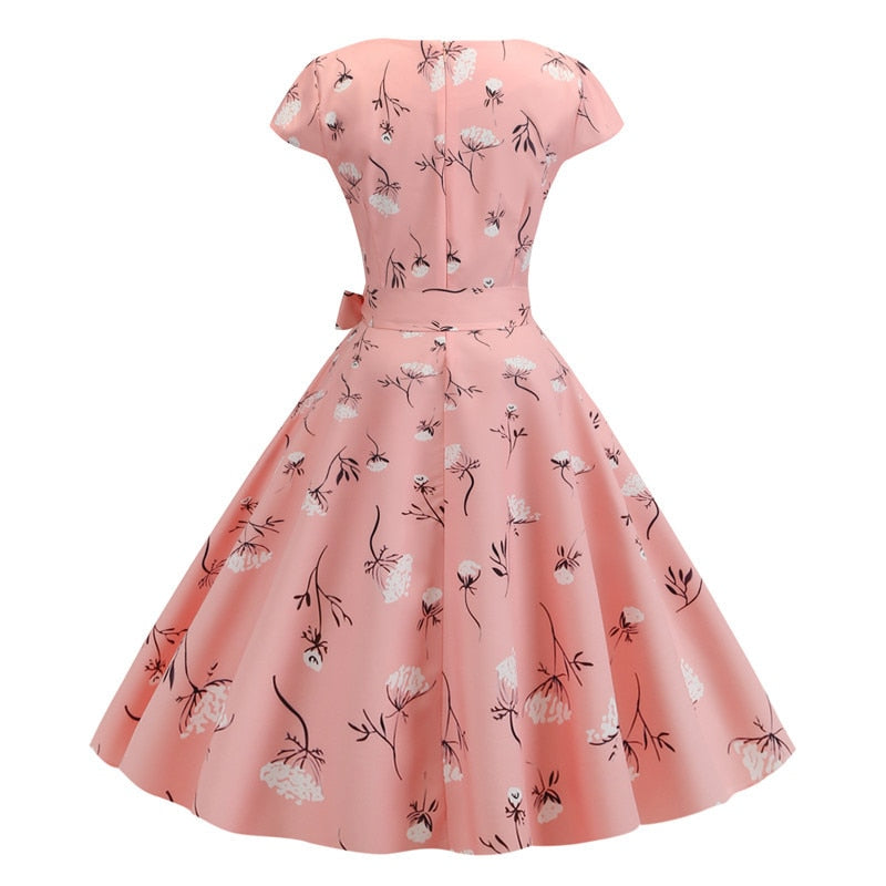 Su estampado floral pálido aporta suavidad y feminidad a tu look. El lazo en la cintura añade un toque de clase y originalidad, haciendo de este vestido una opción ideal para tus ocasiones especiales.
